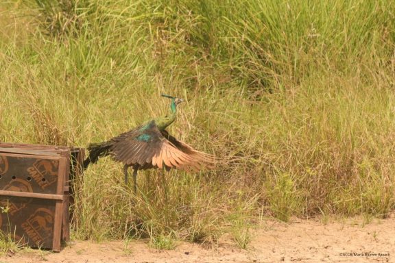 Drei der vier ausgewilderten Tiere waren indochinesische Ährenträger Pfaue. Es handelt sich um eine weltweit bedrohte Art. Die Pfauen schlüpften im Frühling im ACCB. Ein halbes Jahr später waren sie bereit, ausgewildert zu werden.