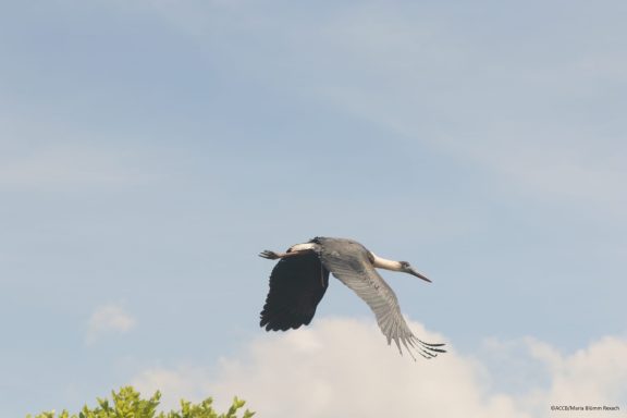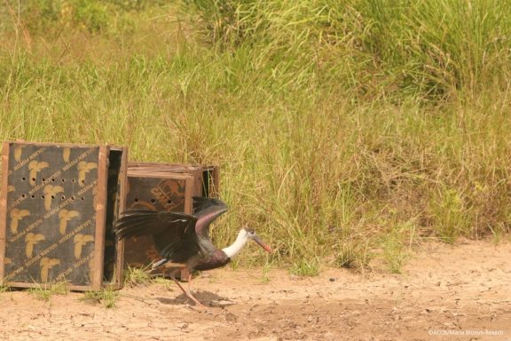 Der vierte ausgewilderte Vogel war ein Asiatischer Wollhalsstorch. Das Tier wurde im September 2023 von ACCB und Partnern verletzt und flugunfähig gerettet. Nach tierärztlicher Betreuung und vollständiger Genesung wurde der Storch freigelassen und ist gesund davongeflogen. Auch Asiatische Wollhalsstörche sind bedroht, da sie gejagt werden und ihr Lebensraum kontinuierlich schrumpft.